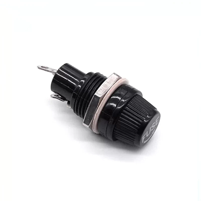 Nosilec varovalke z navojnim pokrovčkom na plošči je primeren za cevne varovalke 5 x 20 mm. Nosilci varovalk so dobavljeni v dveh delih, držalo varovalk in nosilec varovalk. Namestitev je preprosta, ko je želena plošča izrezana, se nosilec varovalke potisne v luknjo in varno pritrdi z zaklepno podložko. Varovalka primerne velikosti (največ 10 amperov) se vstavi v nosilec in privije skupaj.